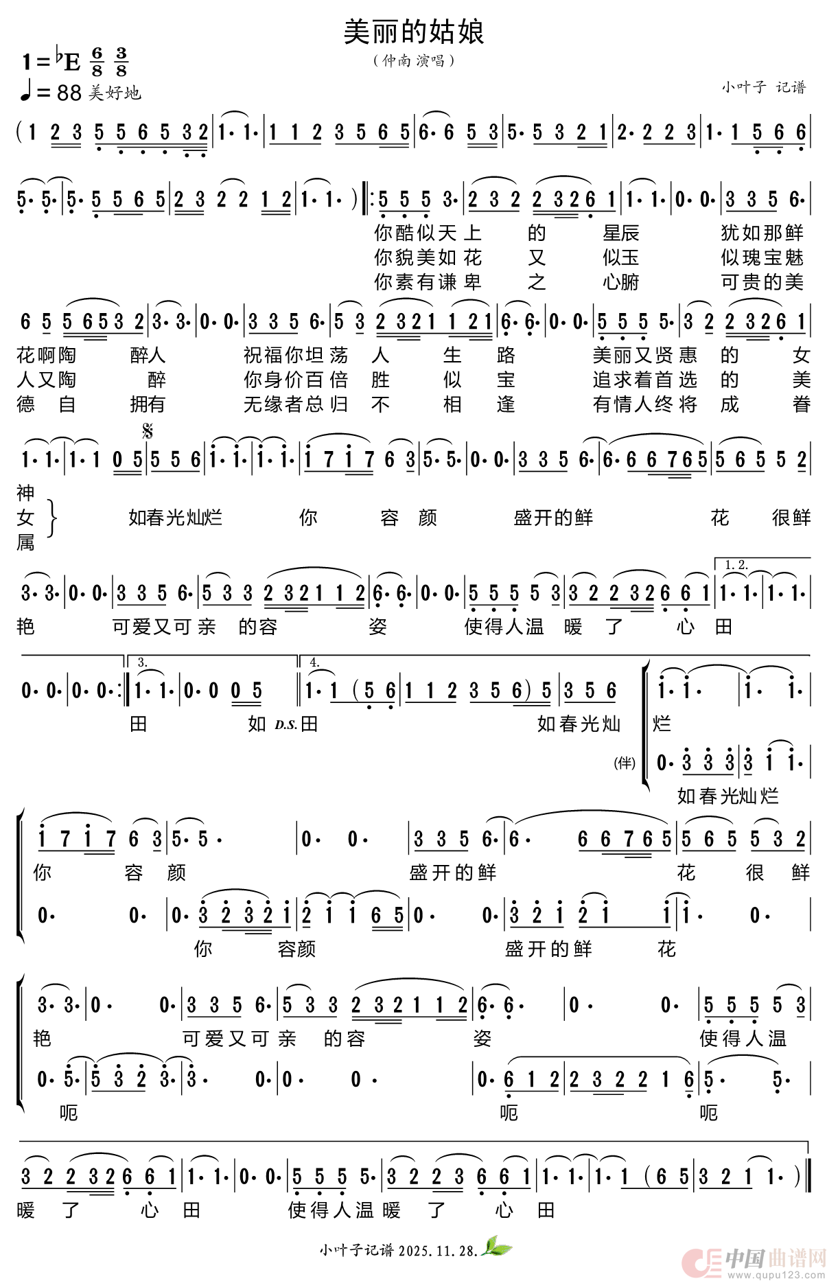 演唱(奏):仲南 来源:简谱网 上传:小花儿357