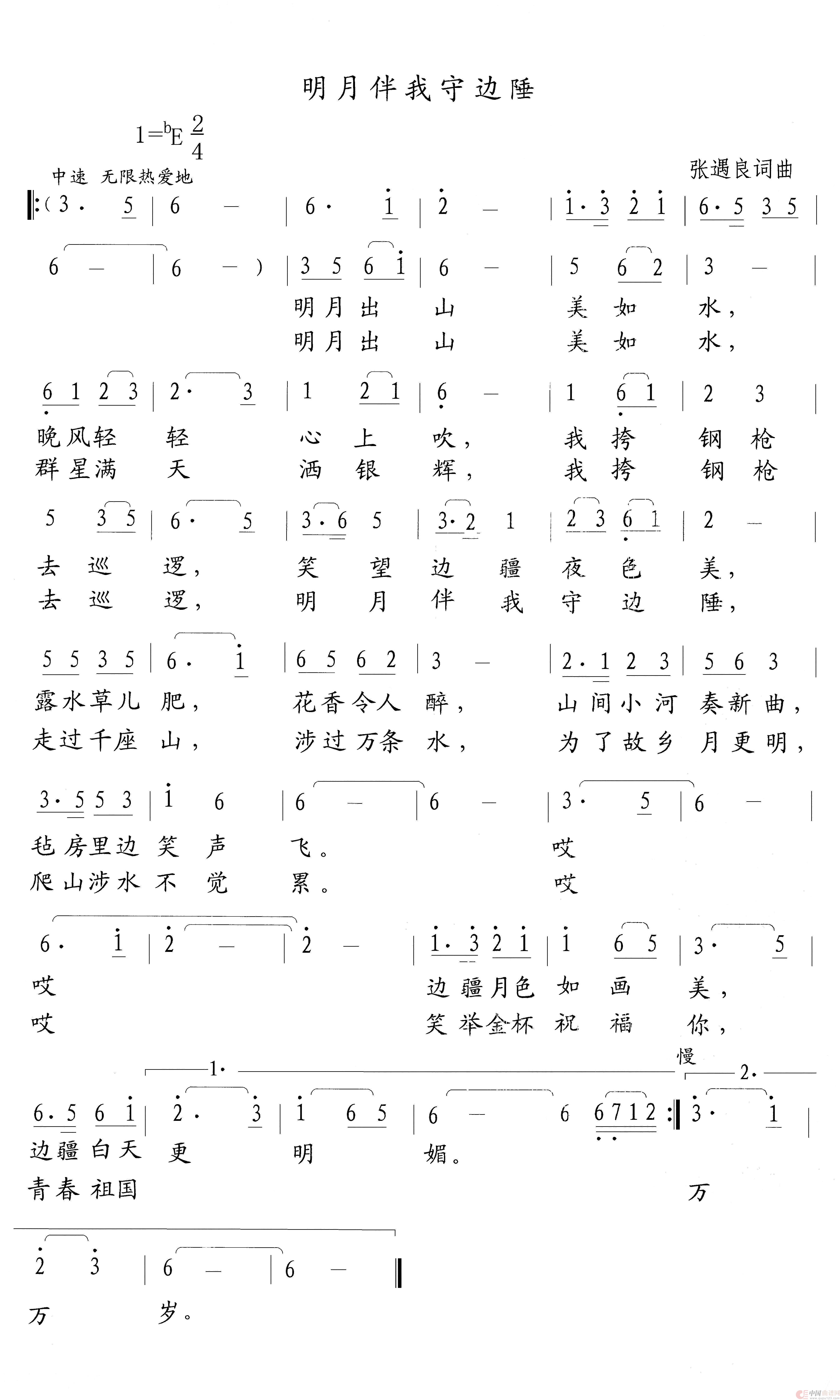 关于《明月伴我守边陲》曲谱的评论