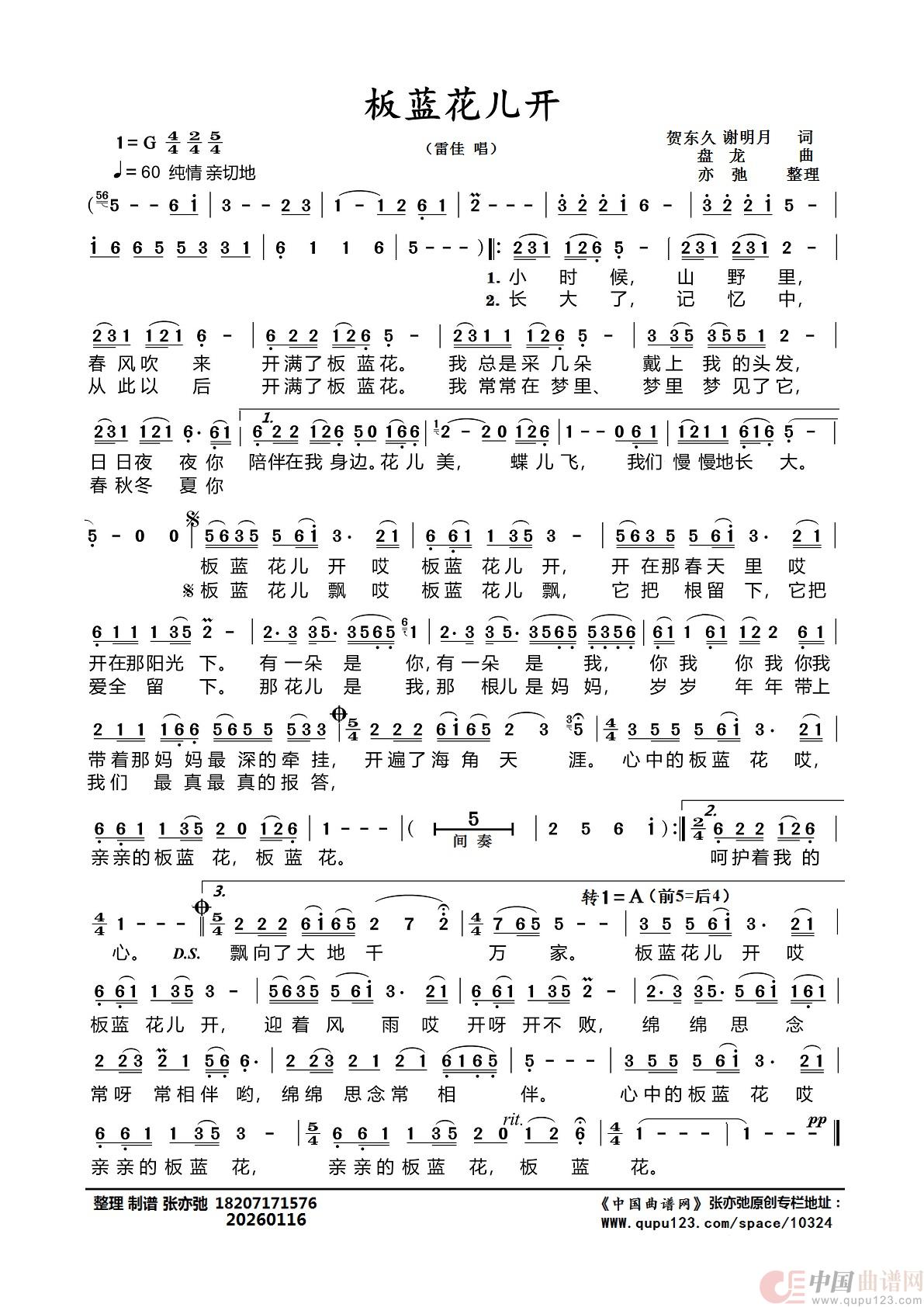 板蓝花儿开(亦弛整理)