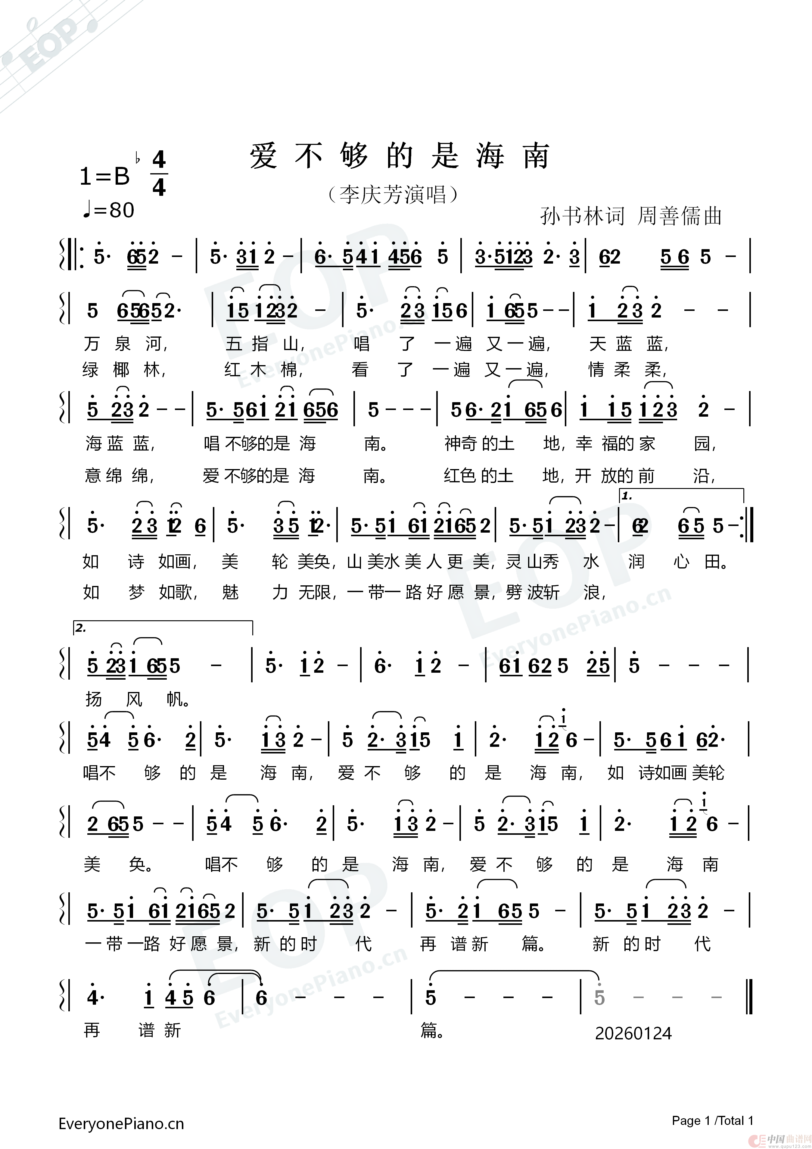 提示:在曲谱图片上单击右键,选择"图片另存为..."即可将曲谱保存到您的电脑中,打印时候可将图片插入到WORD中,调整合适大小打印即可。