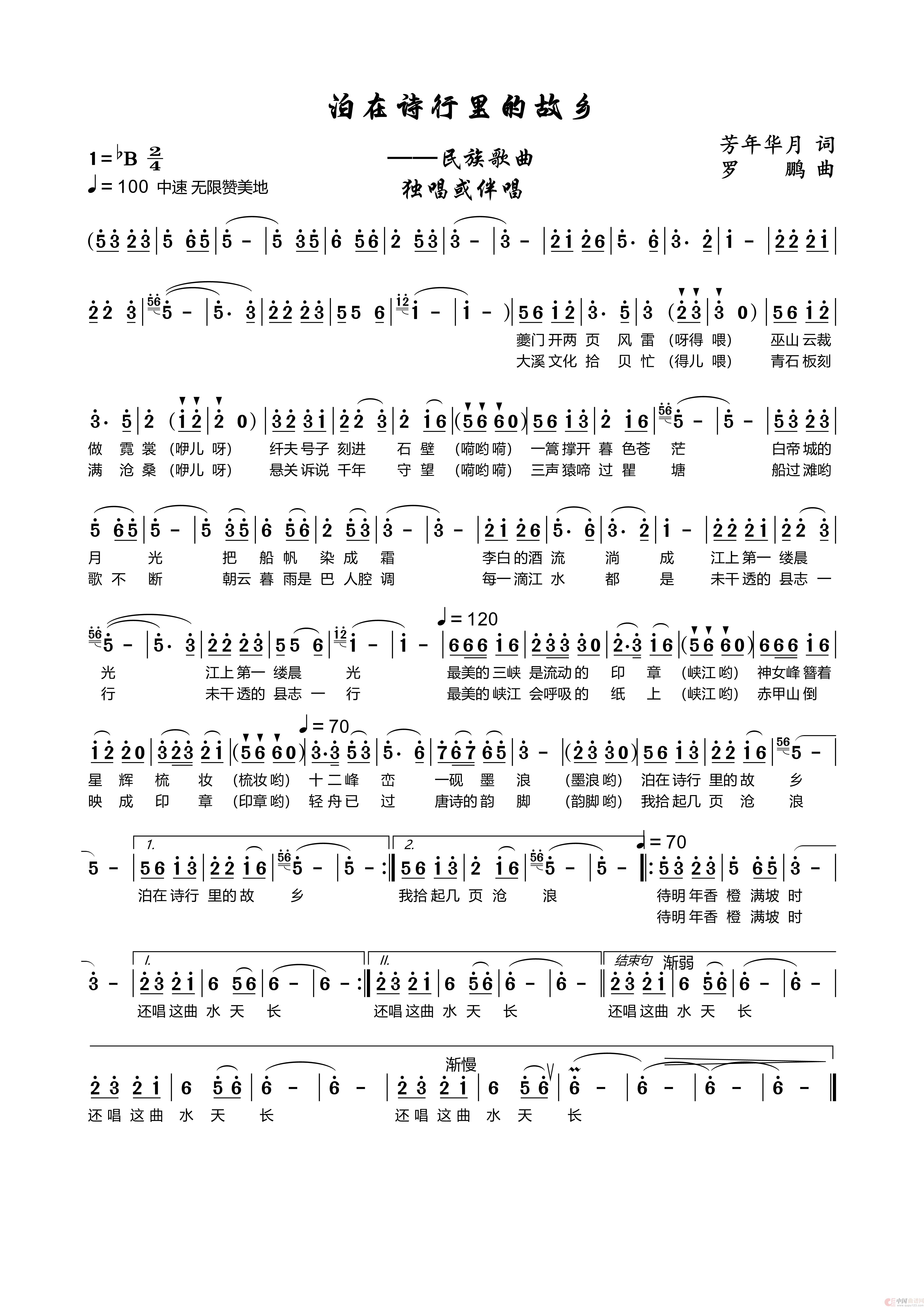 关于《泊在诗行里的故乡》曲谱的评论