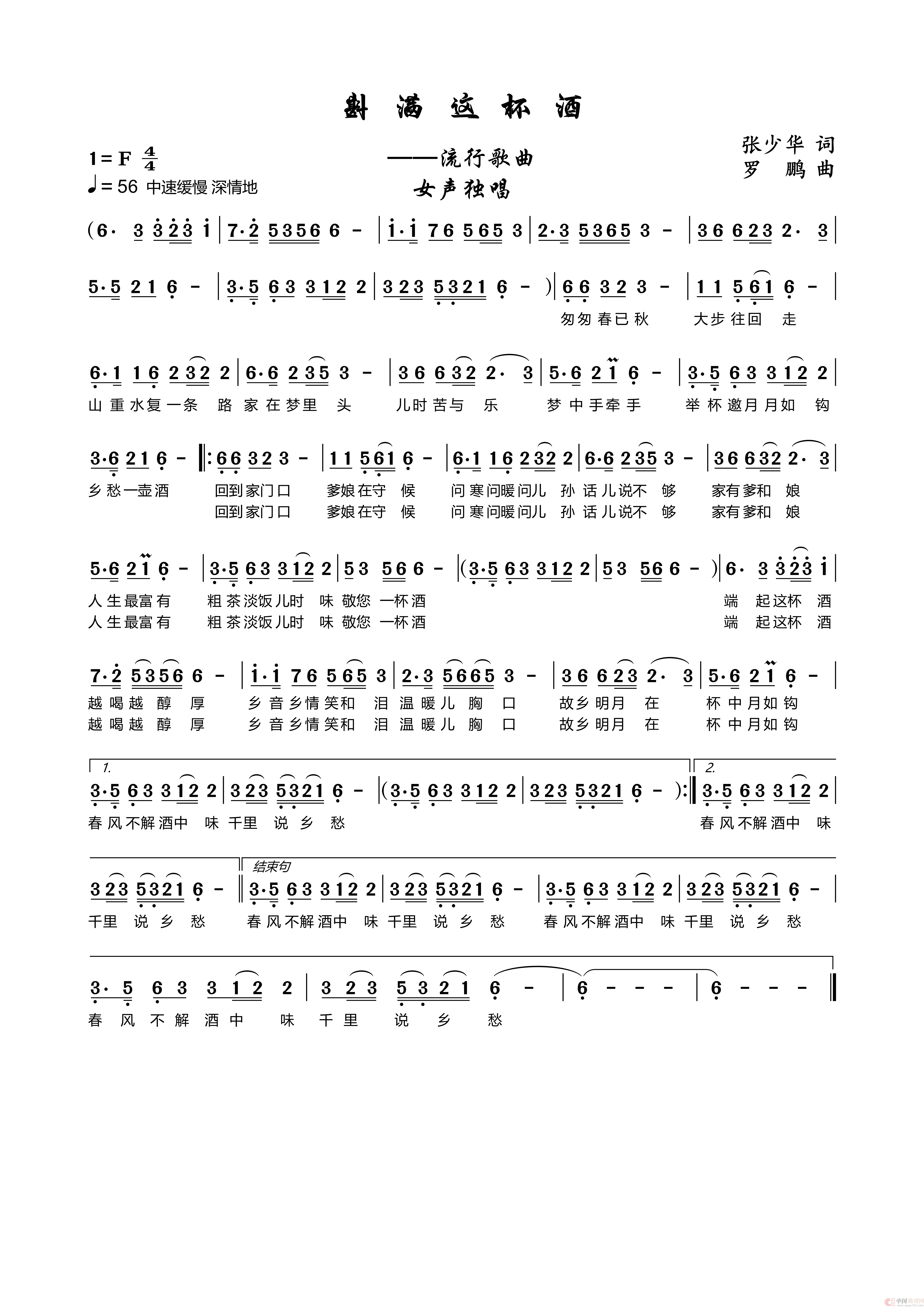 关于《斟满这杯酒》曲谱的评论