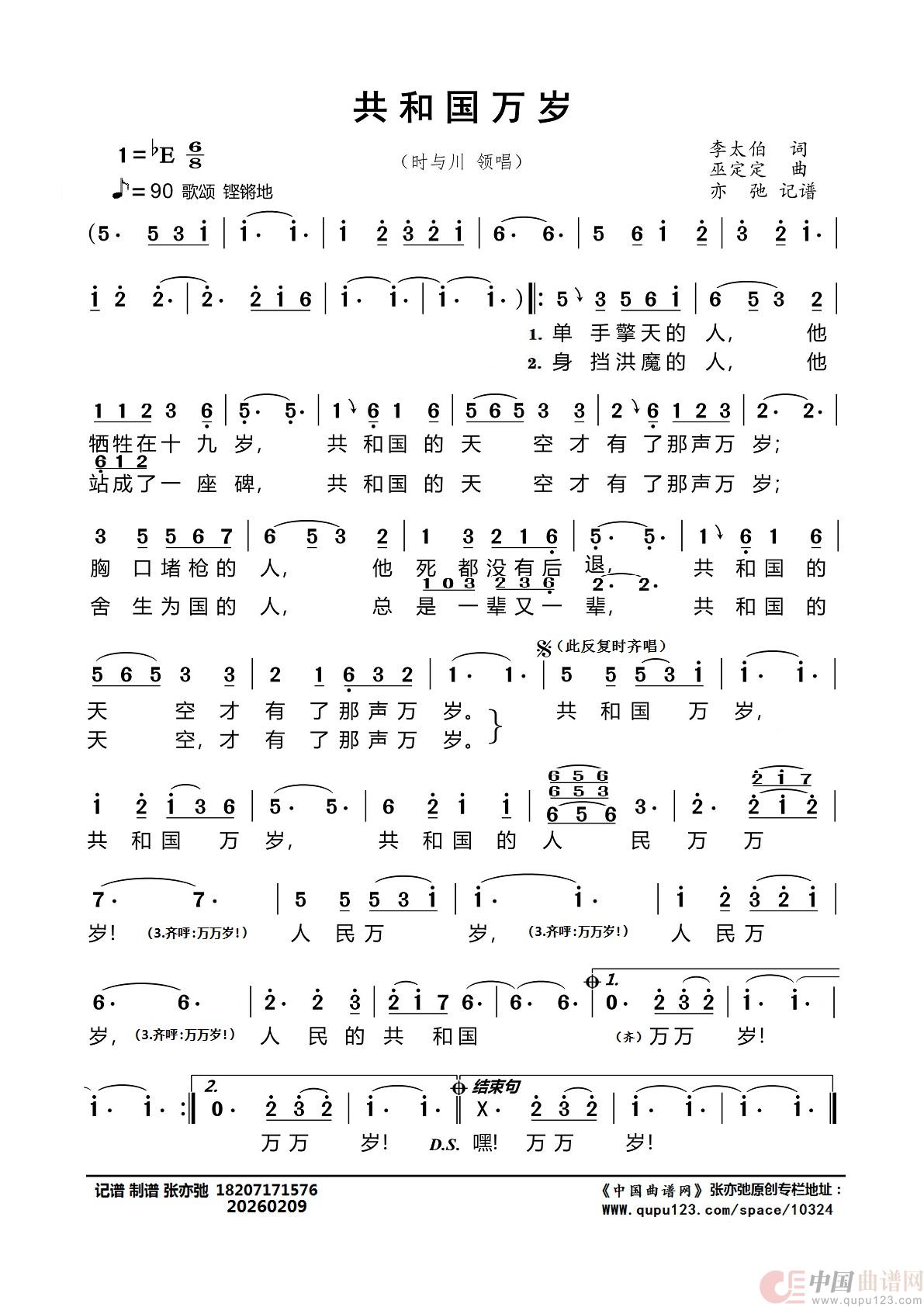 作词:李太伯   作曲:巫定定   演唱(奏):时与川领唱   来源:张亦弛 记谱 制谱   上传:咪迷米张亦弛   日期:2026-02-09   浏览次数: