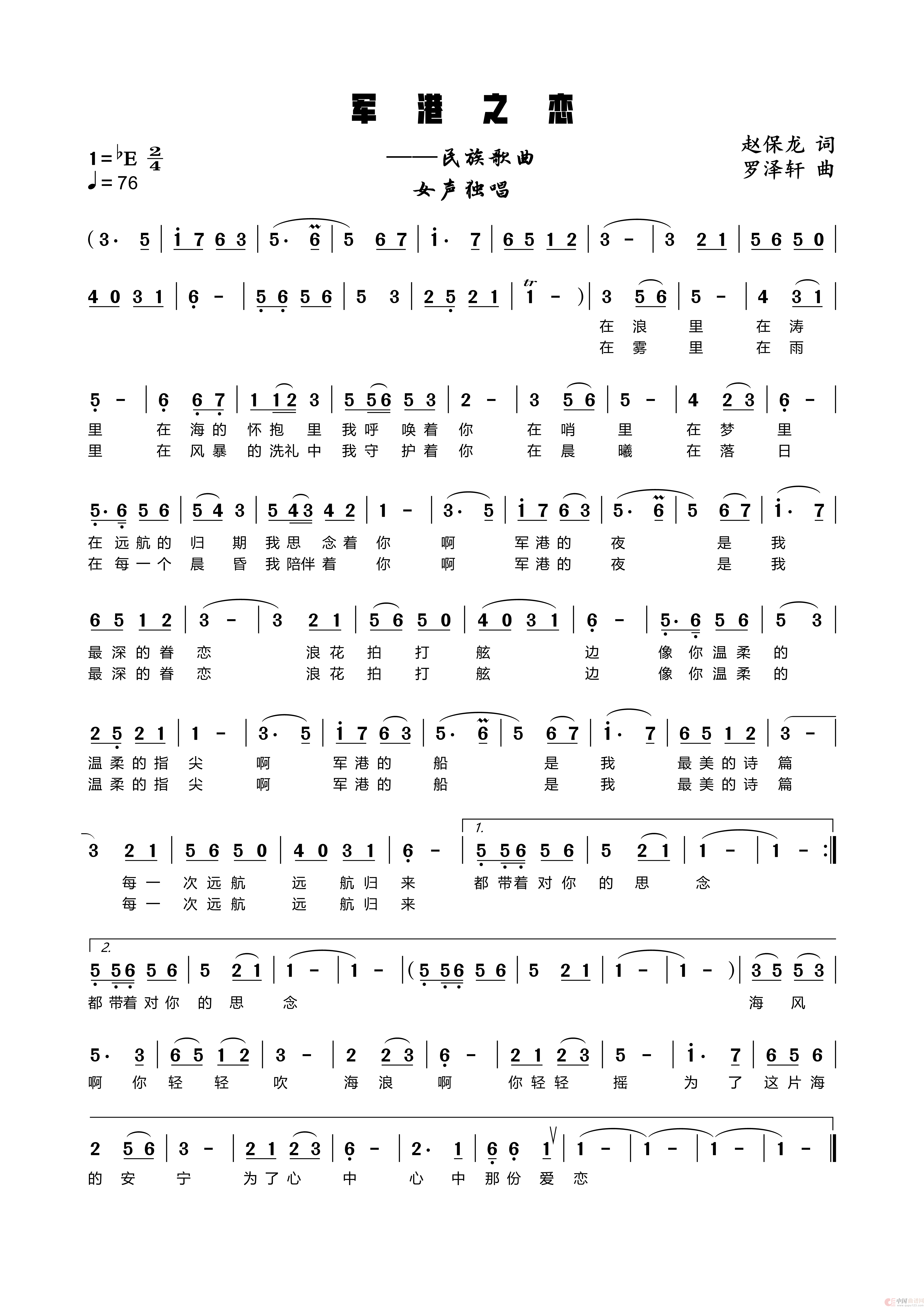 关于《军港之恋》曲谱的评论
