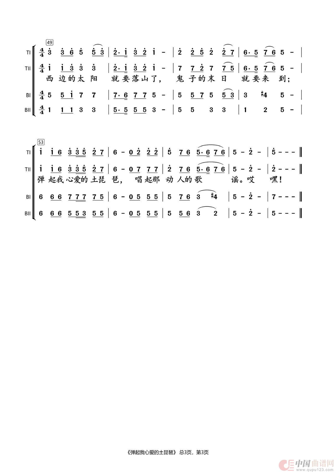 弹起我心爱的土琵琶(四声部合唱简谱)