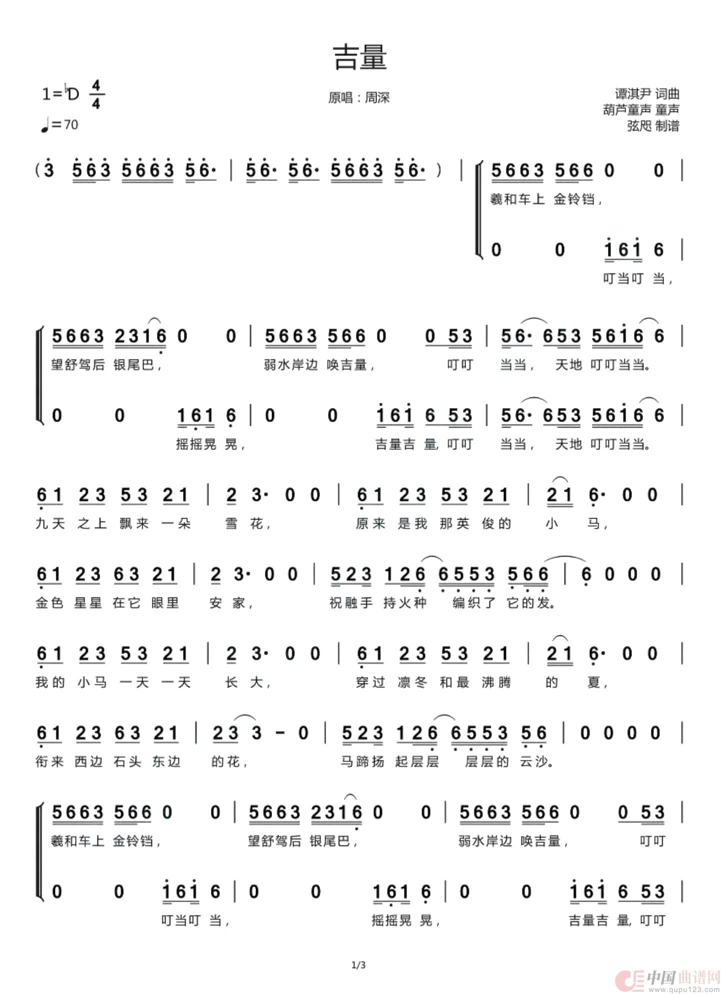 吉量(二声部合唱简谱)