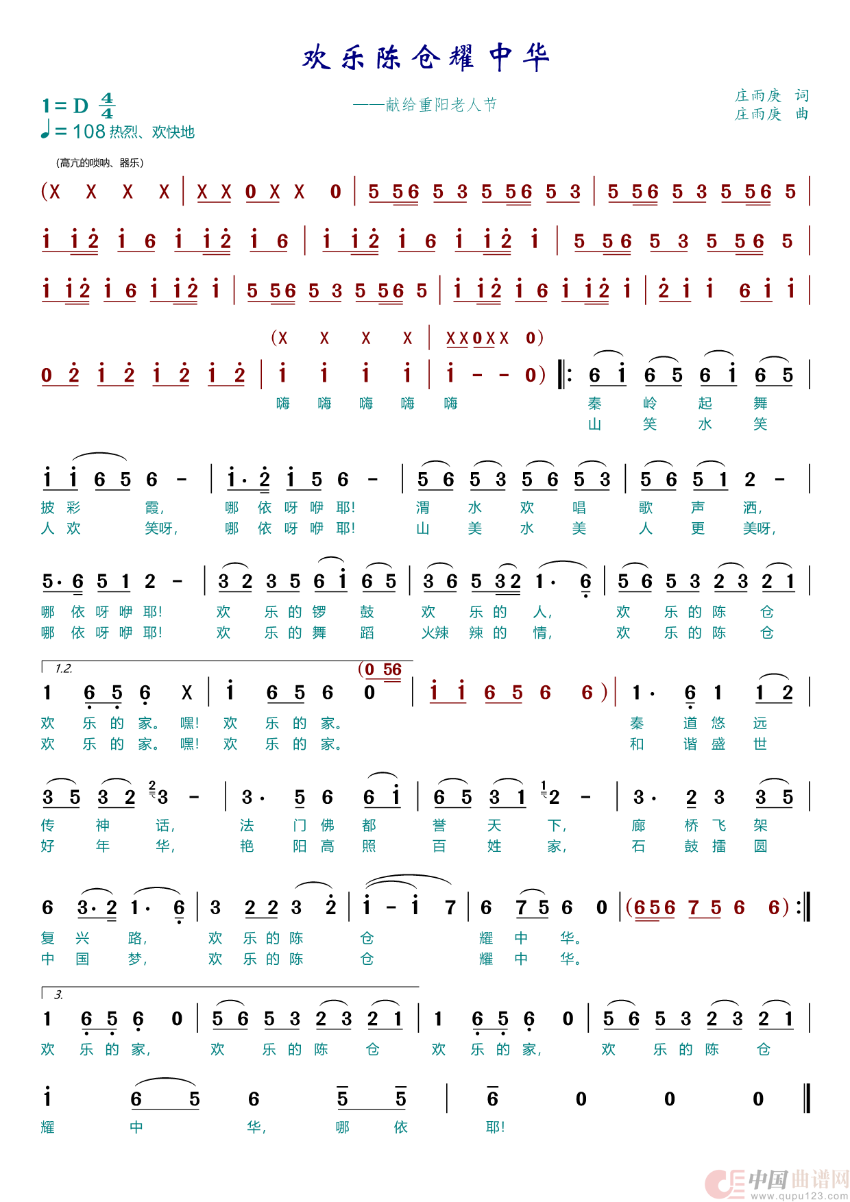 欢乐陈仓耀中华(1)_原文件名:15. D调 欢乐陈仓耀中华 庄雨庚作品.png
