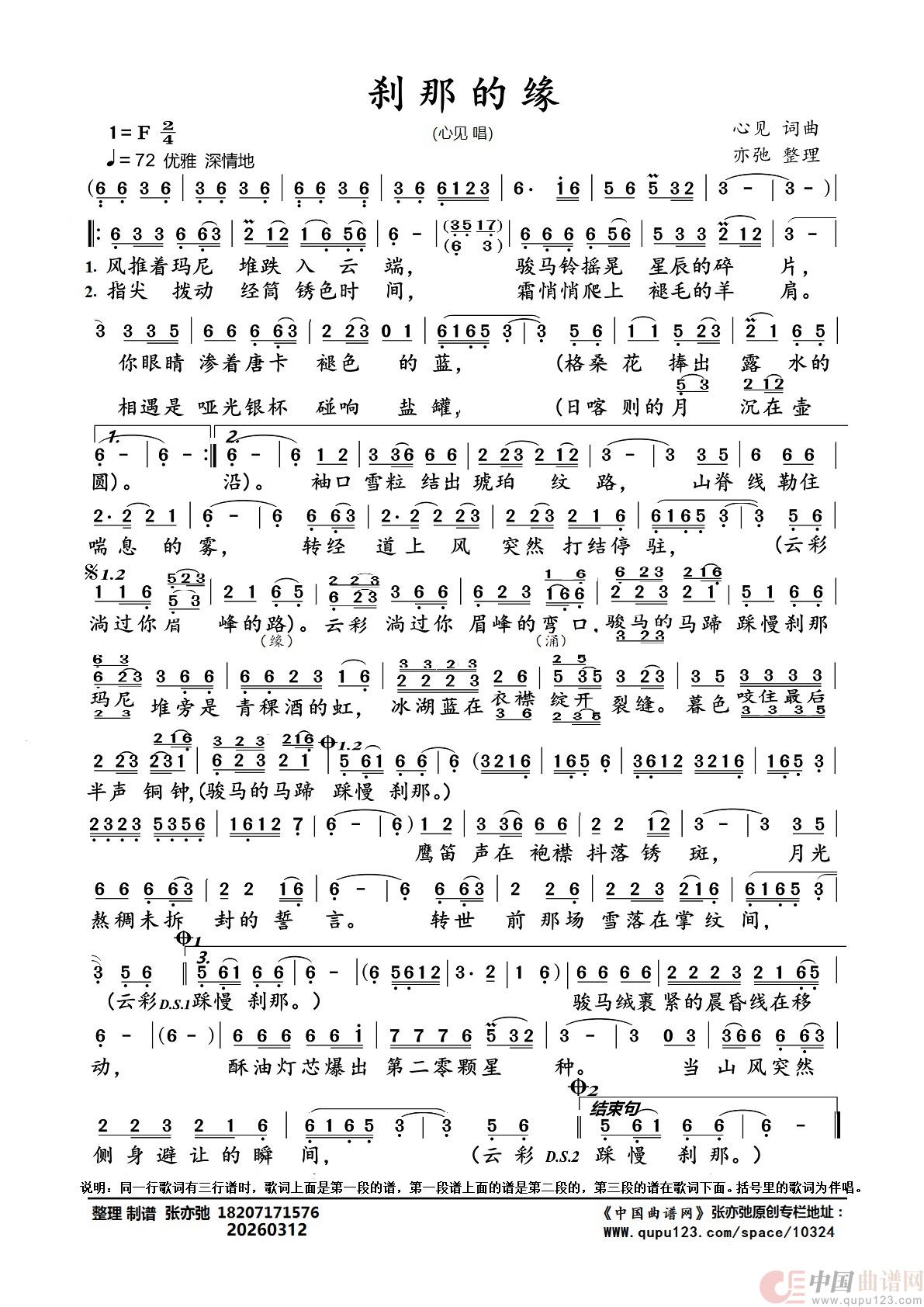 作词:心见 作曲:心见 演唱(奏):心见 来源:张亦弛 整理 制谱 上传:咪迷米张亦弛