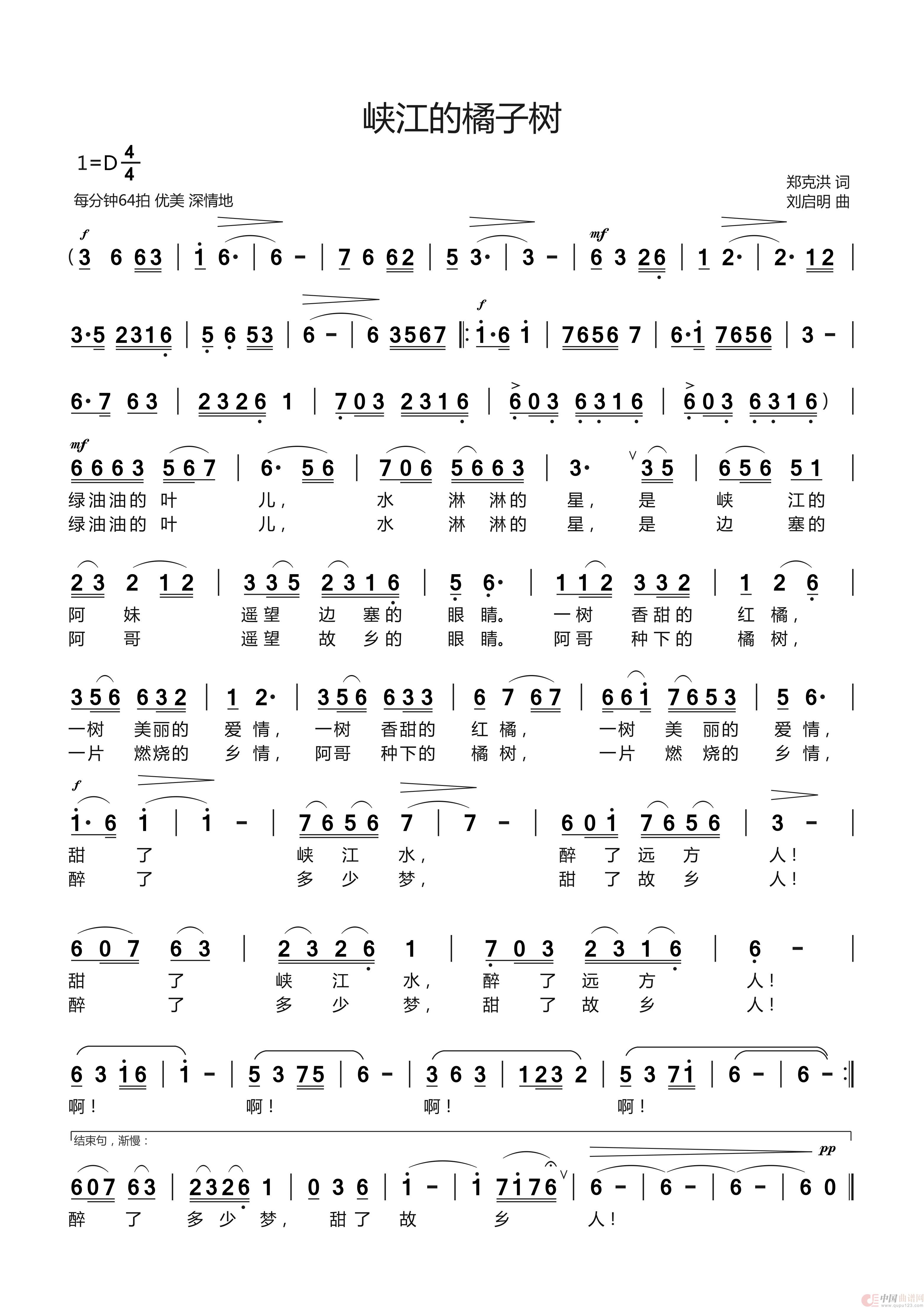 关于《峽江的橘子树(郑克洪词 刘启明曲 沈欣演唱 )》曲谱的评论