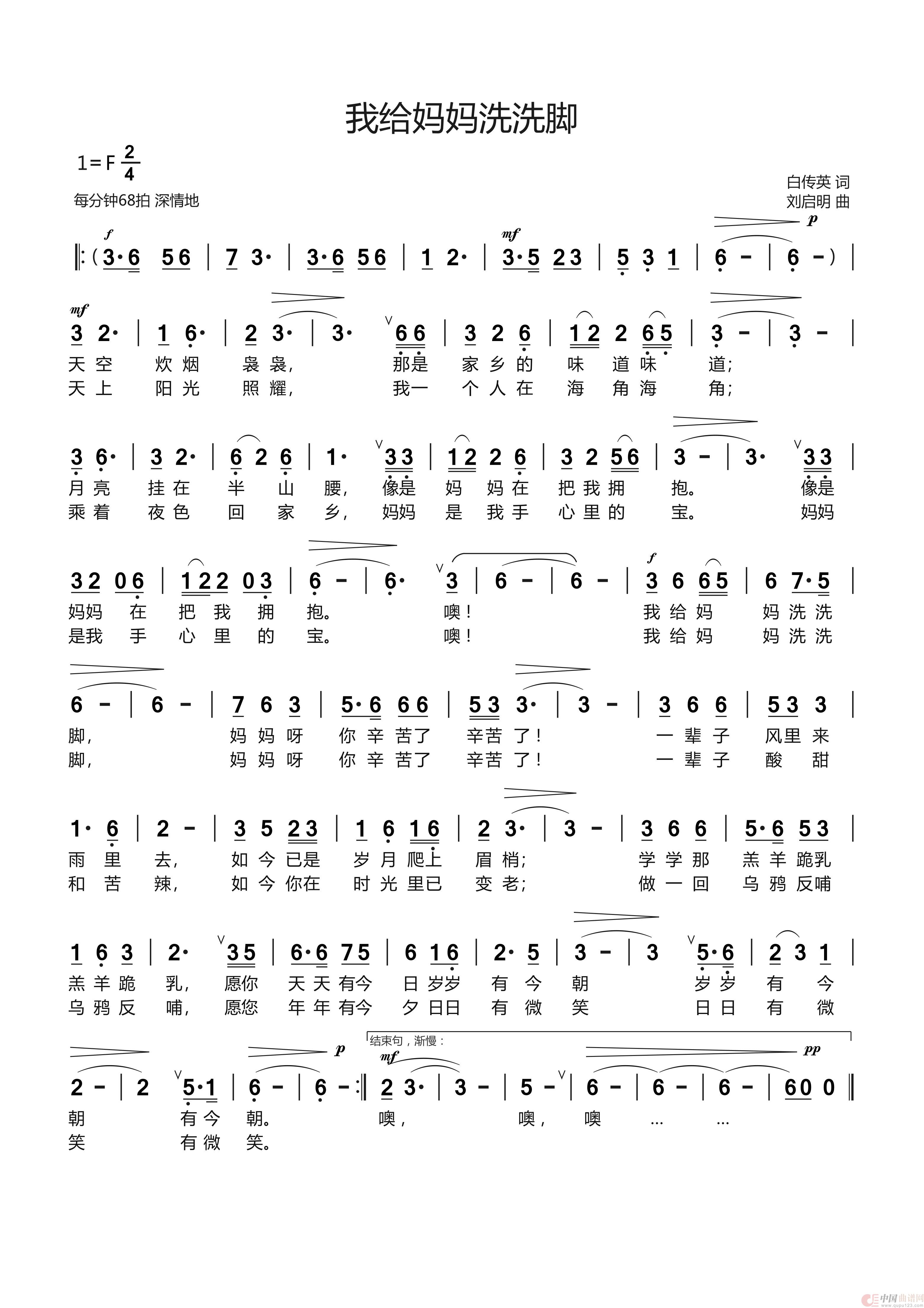 关于《《我给妈妈洗洗脚》白传英词 刘启明曲 李莹演唱).》曲谱的评论