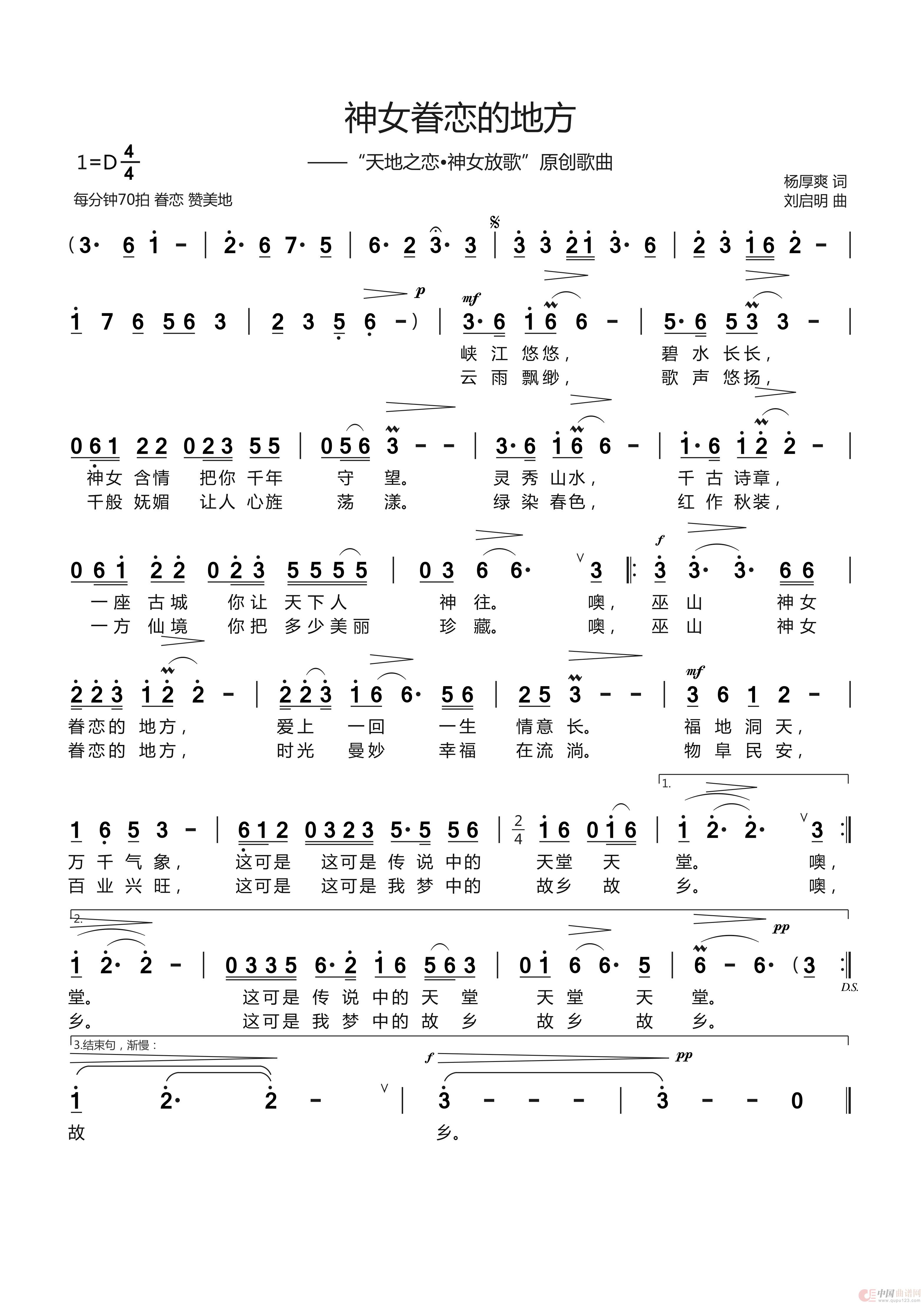 关于《《 神女眷恋的地方》杨厚爽词 刘启明曲 么健演唱》曲谱的评论