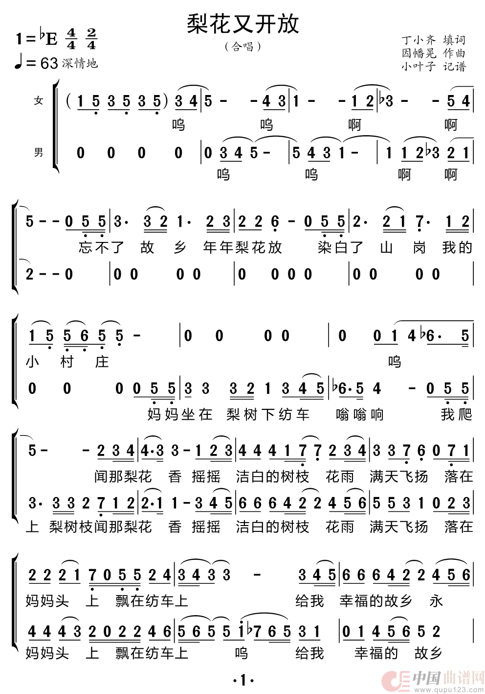关于《梨花又开放》曲谱的评论