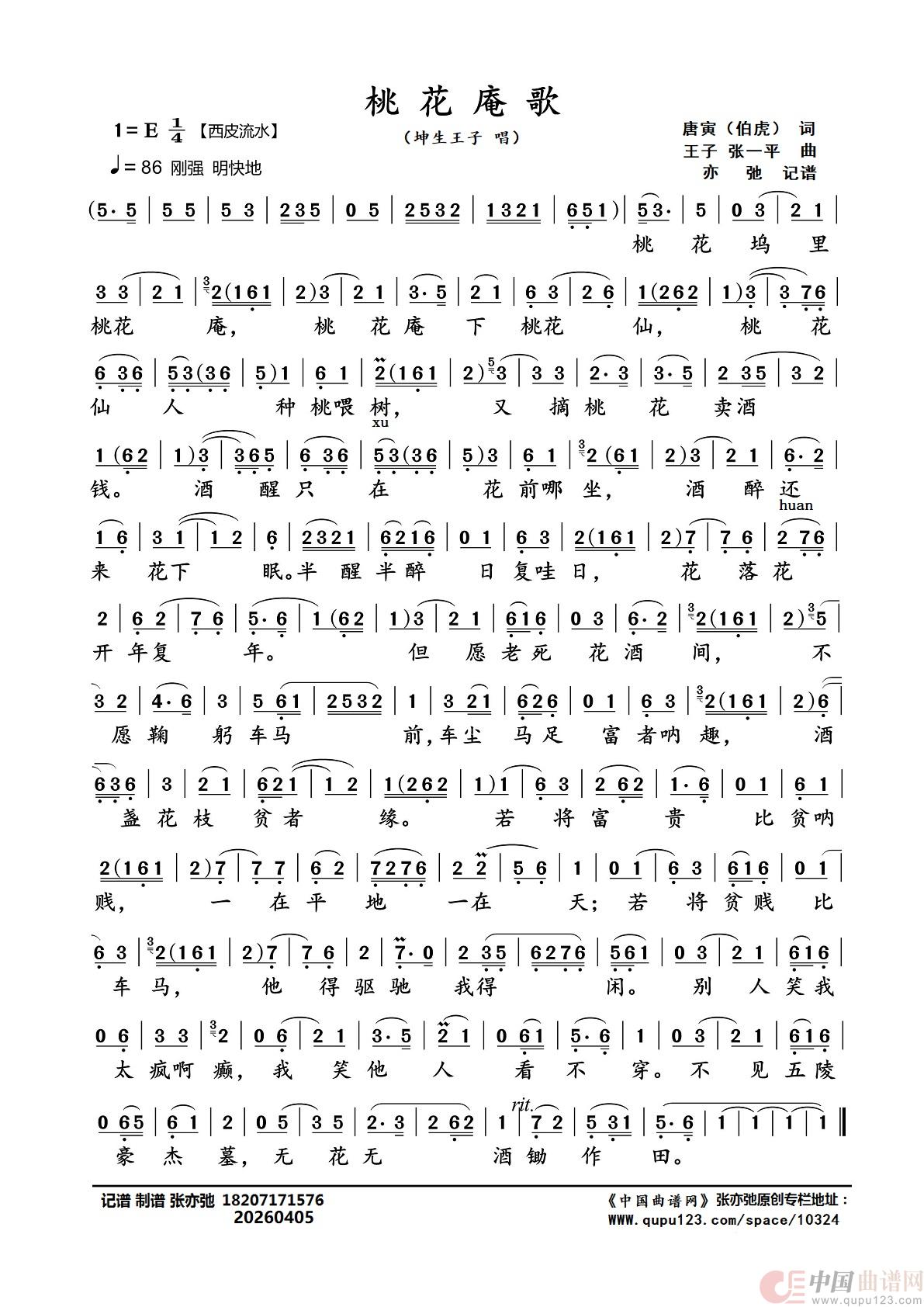 关于《桃花庵歌{京}(亦弛记谱)》曲谱的评论