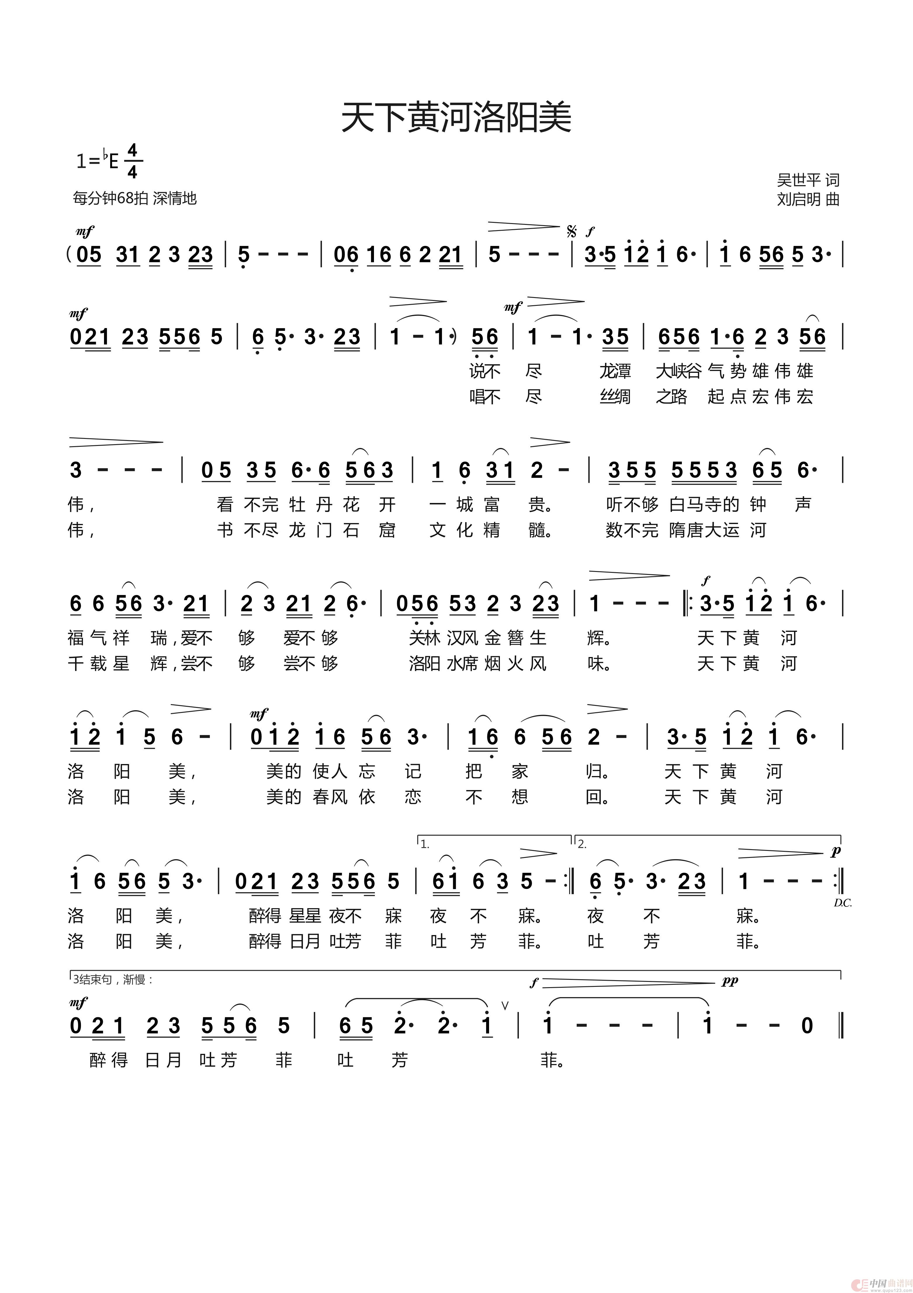 关于《《天下黄河洛阳美》(吴世平词 刘启眀曲 李萍演唱)》曲谱的评论