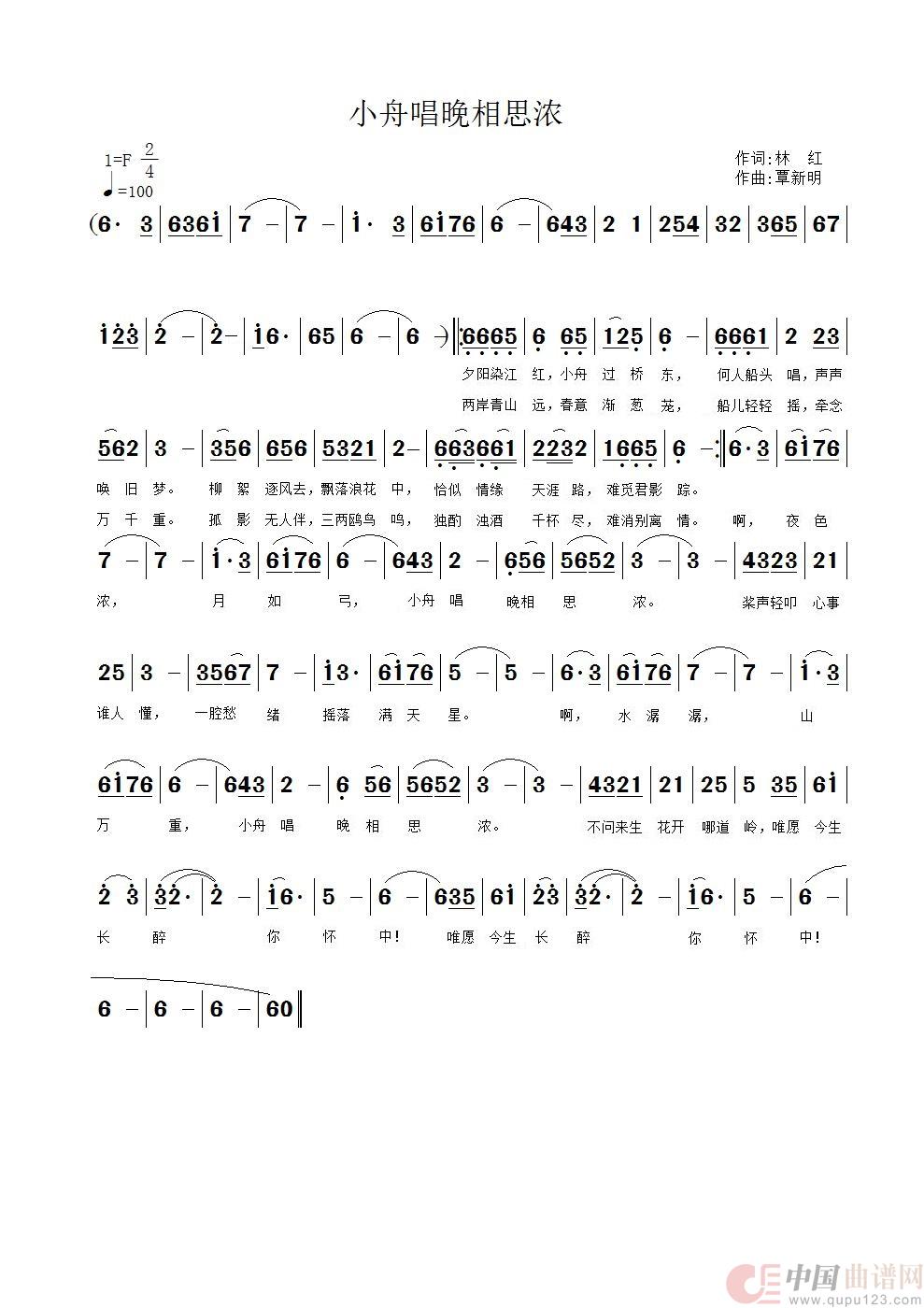 关于《小舟唱晚相思浓》曲谱的评论