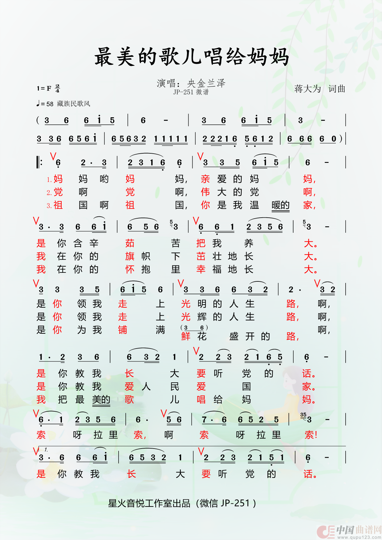 关于《最美的歌儿唱给妈妈》曲谱的评论