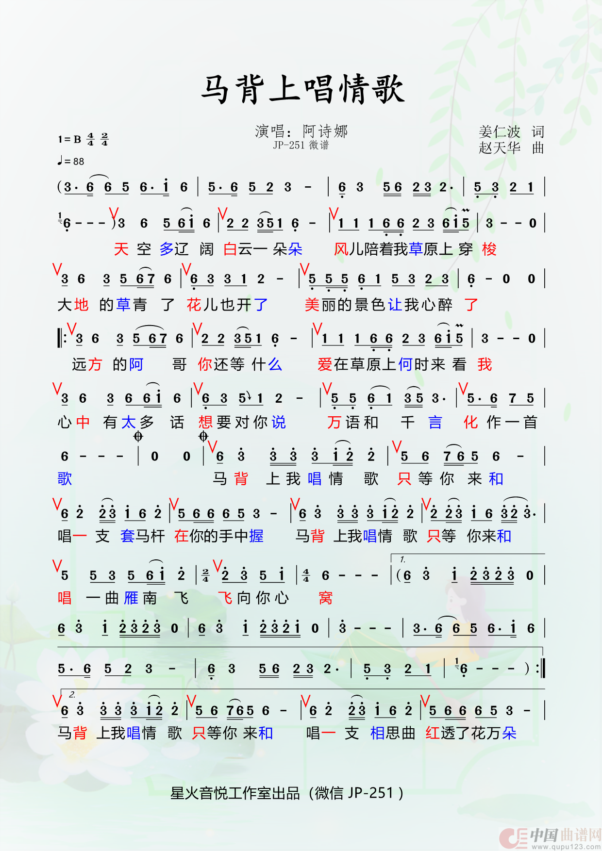 关于《马背上唱情歌》曲谱的评论
