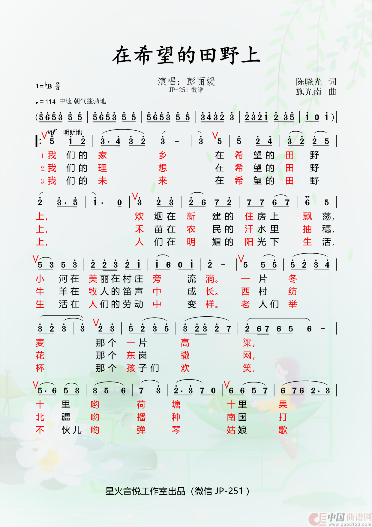 作词:陈晓光   作曲:施光南   演唱(奏):彭丽媛   来源:扒谱   上传:扣3883443810   日期:2026-04-22   浏览次数: