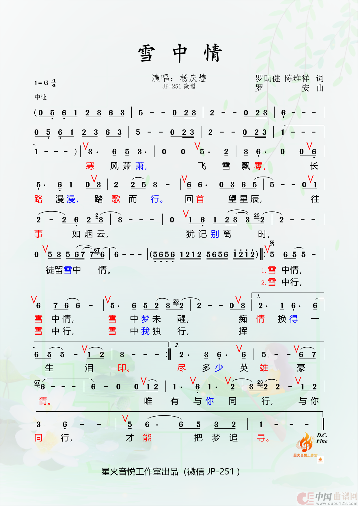 关于《雪中情》曲谱的评论