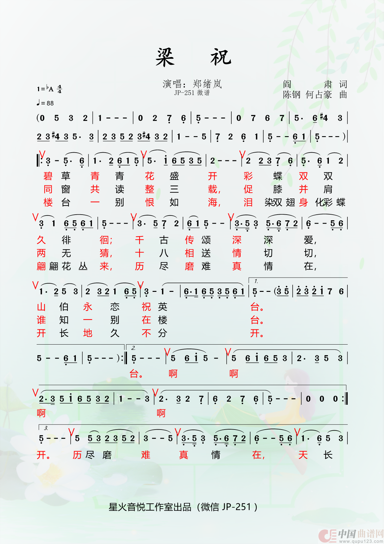 作词:阎肃   作曲:陈钢 何占豪   演唱(奏):郑绪岚   来源:扒谱   上传:扣3883443810   日期:2026-04-22   浏览次数: