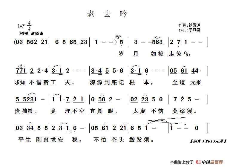 关于《老去吟》曲谱的评论