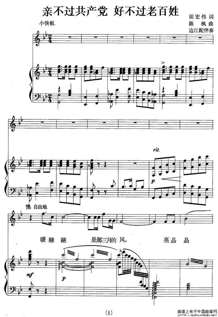 曲谱:亲不过共产党,好不过老百姓(正谱)
