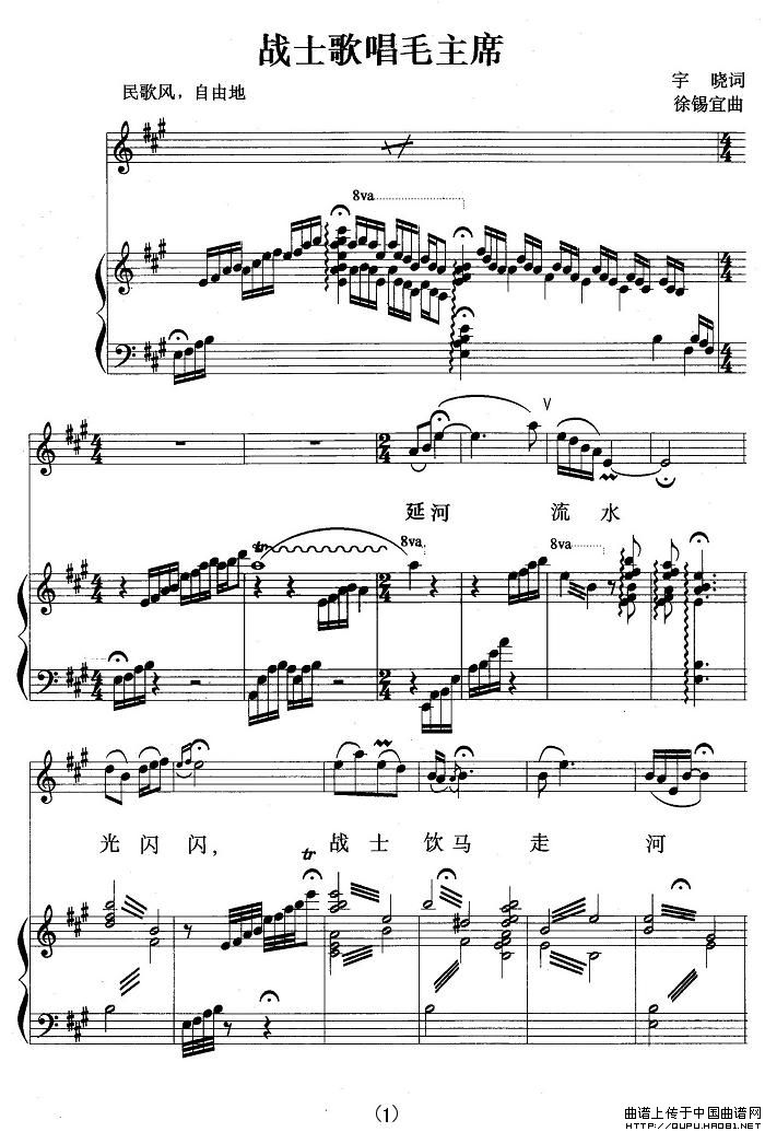 曲谱:战士歌唱毛主席(正谱)