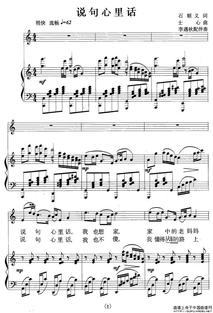 曲谱:说句心里话(正谱、李遇秋配伴奏版)
