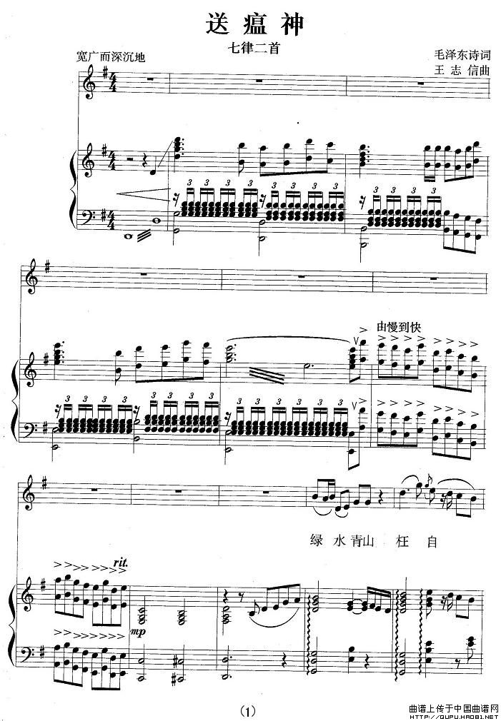 曲谱:送瘟神·七律二首(毛泽东词 王志信曲、正谱)