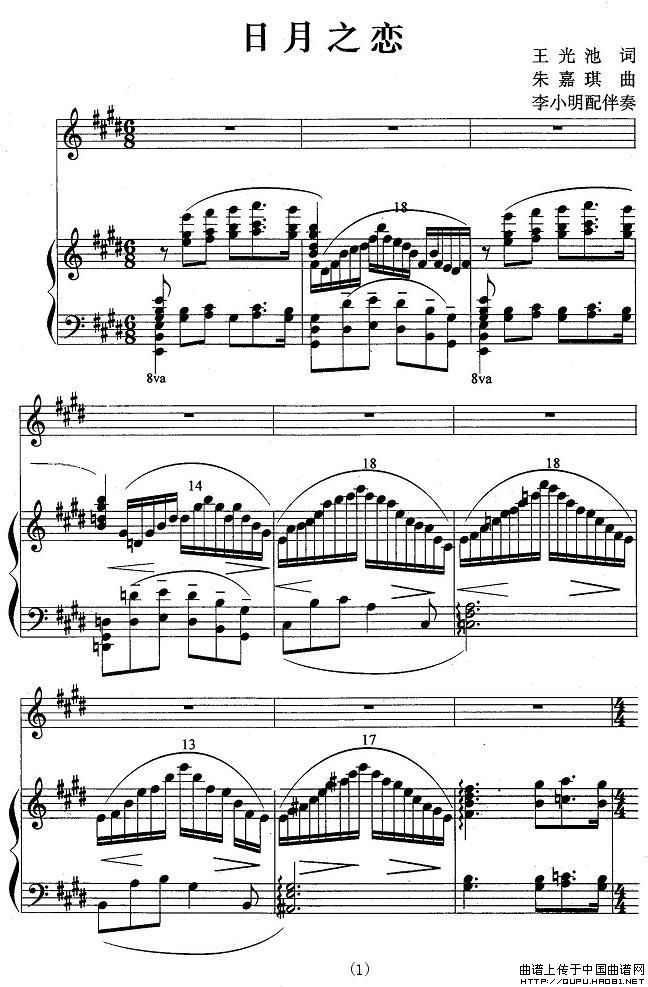曲谱:日月之恋(王光池词 朱嘉琪曲、正谱)