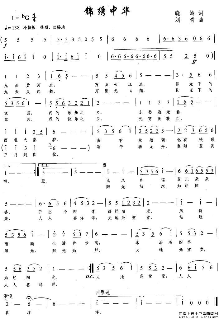 曲谱:锦绣中华(晓岭词 刘青曲)