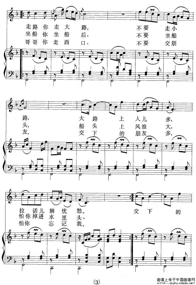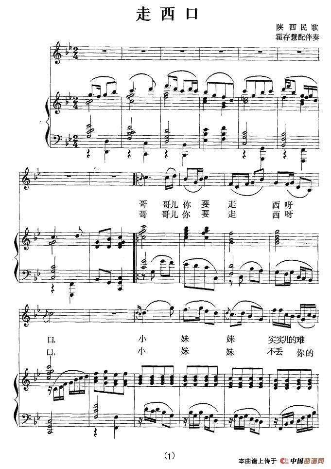 曲谱:走西口(山西民歌、霍存慧配伴奏、正谱、)