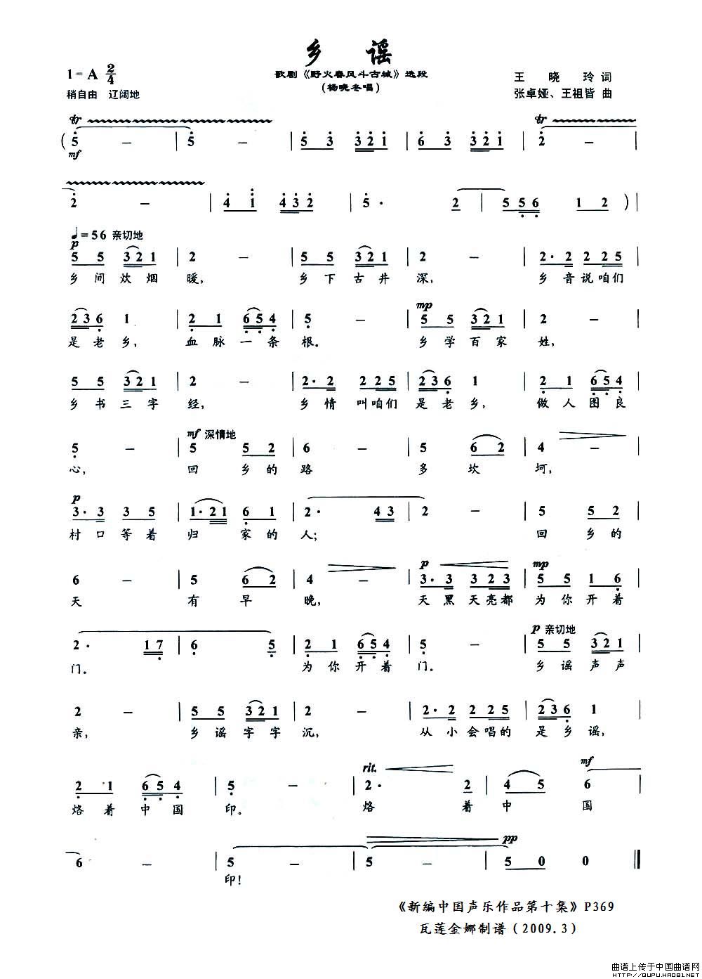 曲谱:乡谣(歌剧《野火春风斗古城》选段)