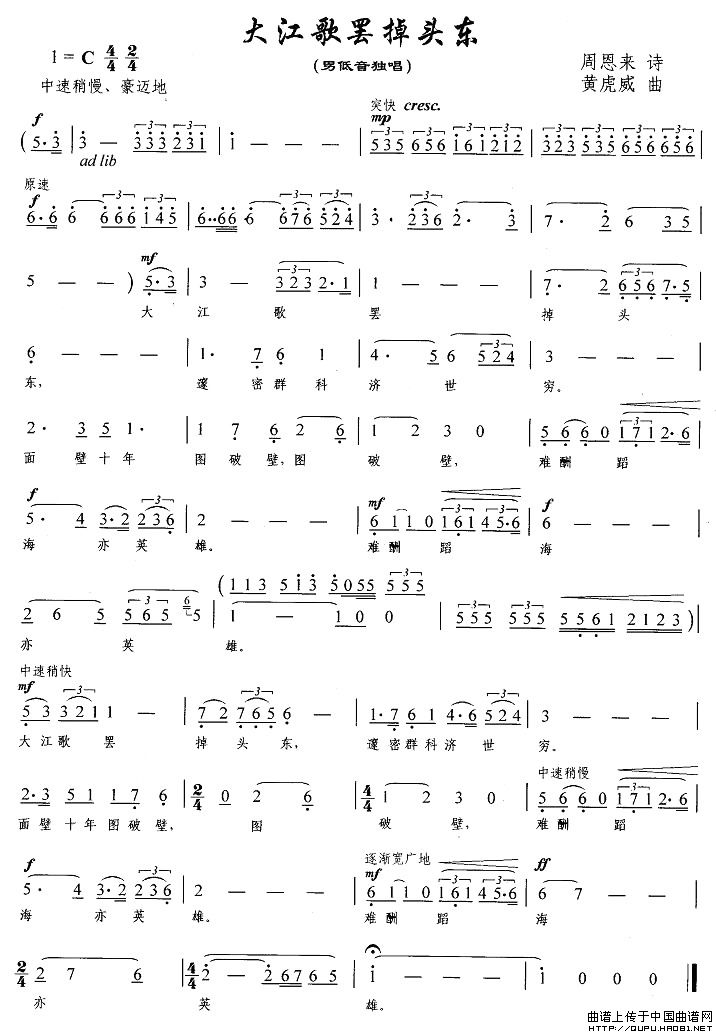 曲谱:大江歌罢掉头东(周恩来词 黄虎威曲)