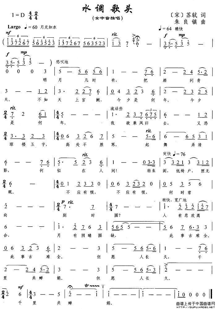 曲谱:水调歌头([宋]苏轼词 朱良镇曲)
