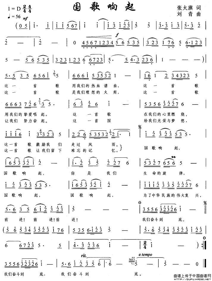 曲谱:国歌响起(张太旗词 刘青曲)