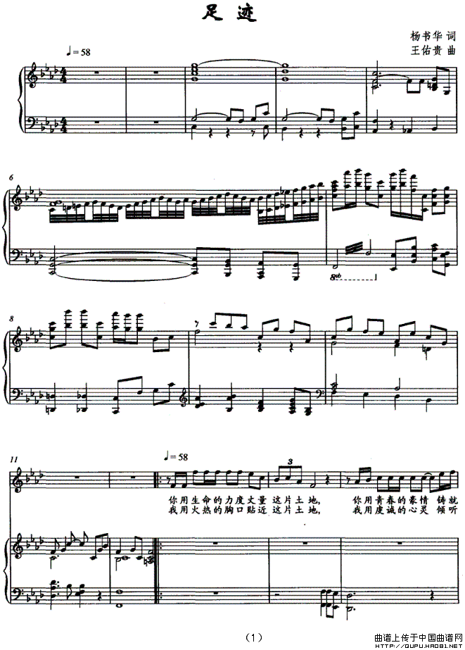 曲谱:足迹(杨书华词 王佑贵曲、正谱)