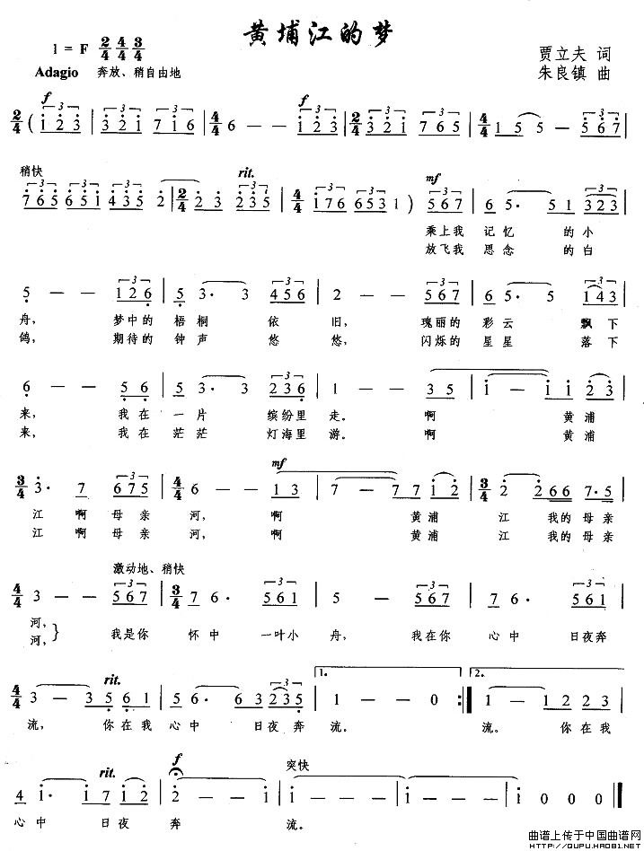 曲谱:黄埔江的梦