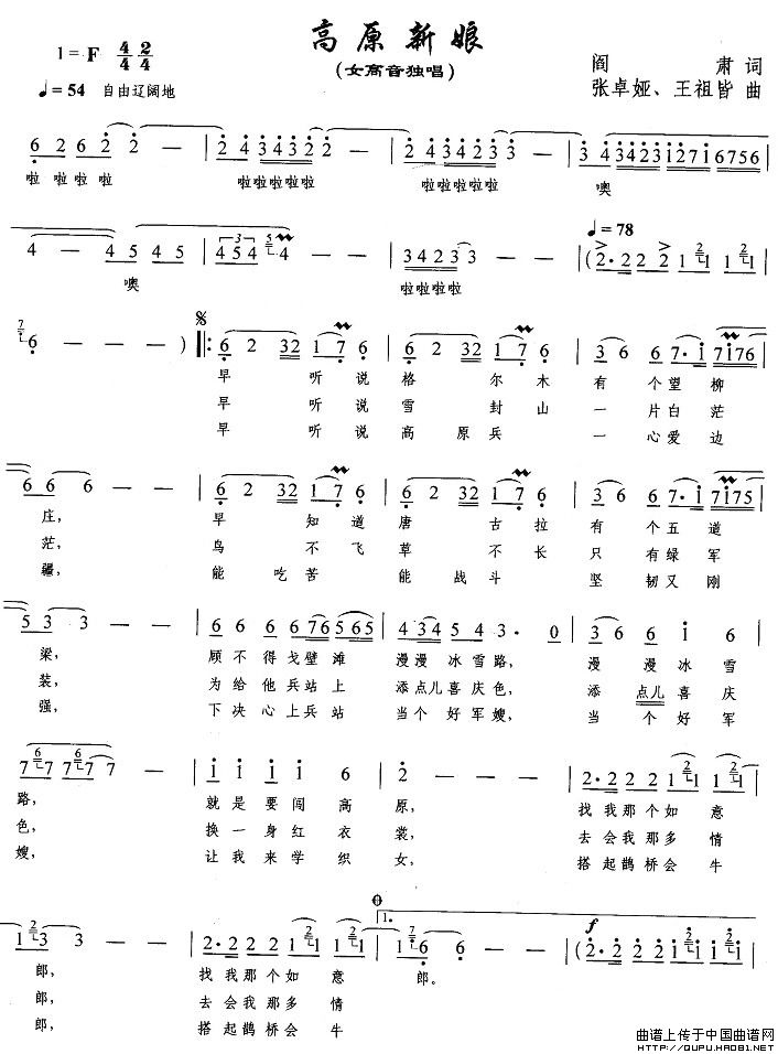 曲谱:高原新娘