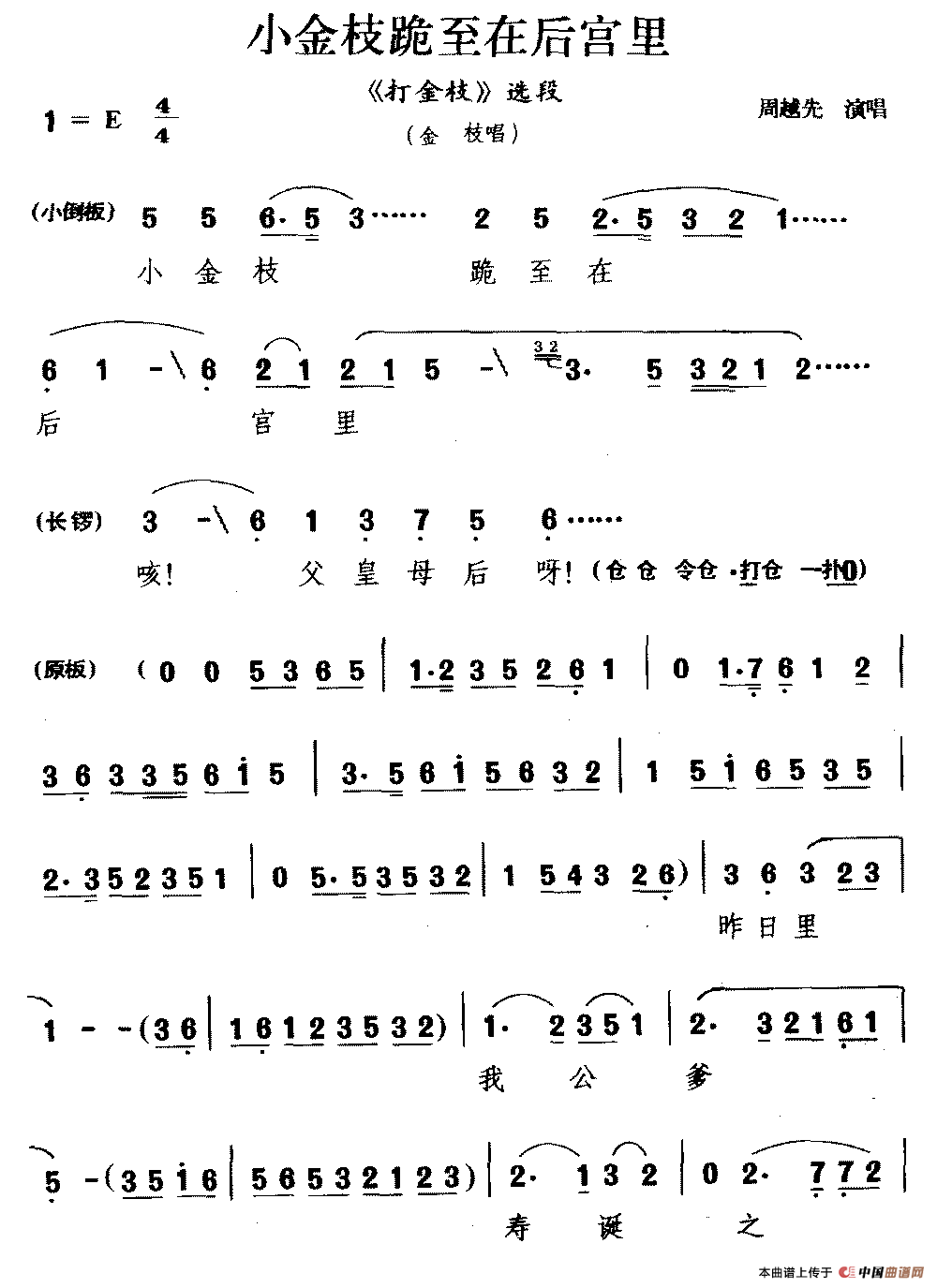曲谱:[婺剧]小金枝跪至在后宫里(《打金枝》选段 金枝唱)