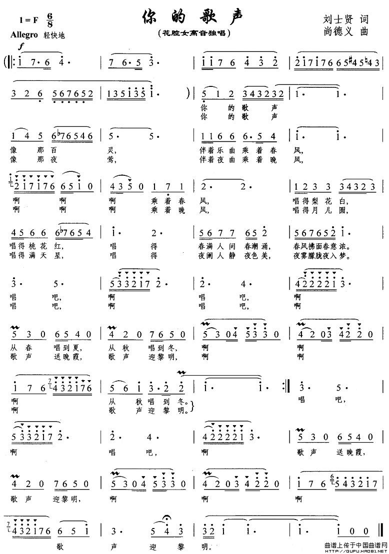 曲谱:你的歌声(刘士贤词 尚德义曲)