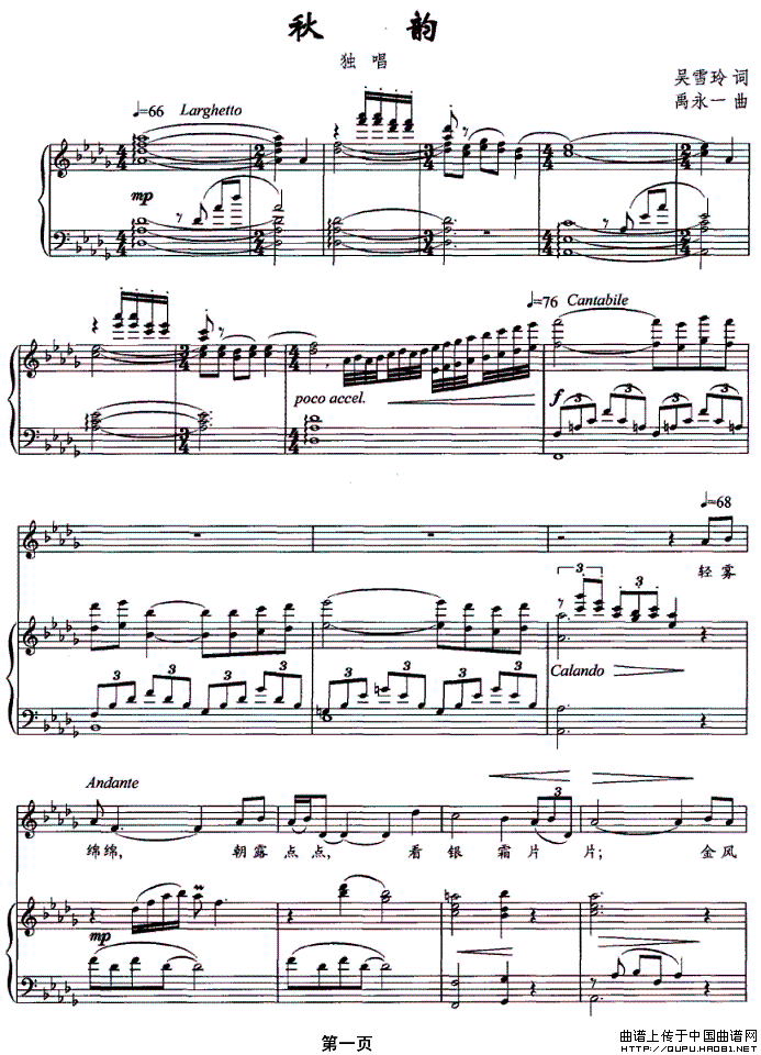 曲谱:秋韵(吴雪玲词 禹永一曲、正谱)