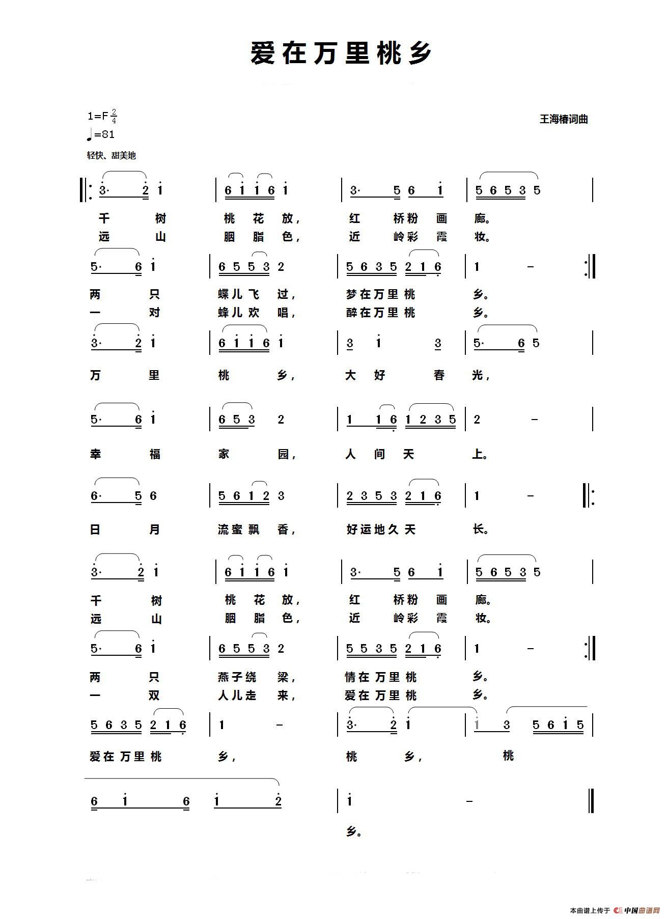 曲谱:爱在万里桃乡(王海椿词 王海椿曲)