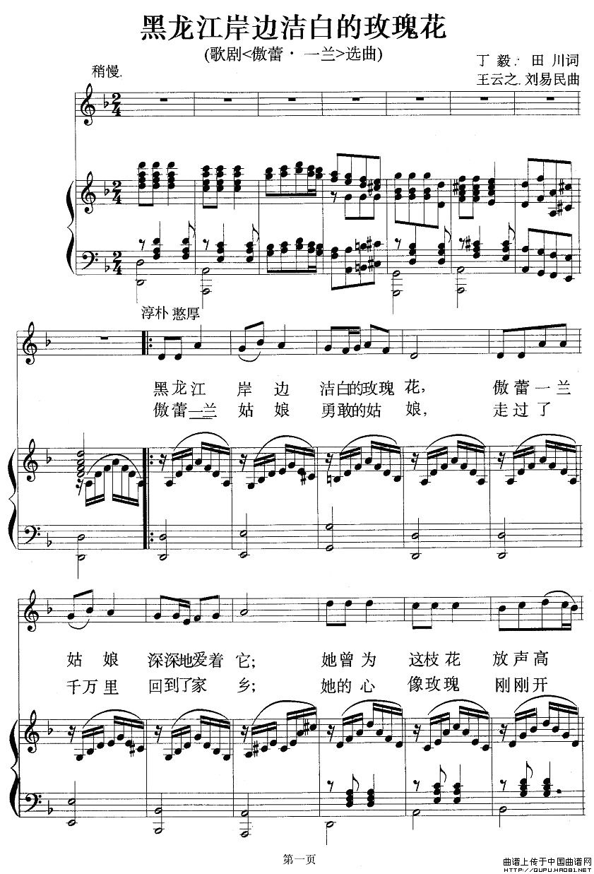 曲谱:黑龙江岸边洁白的玫瑰花(歌剧《傲蕾·一兰》选曲、正谱)