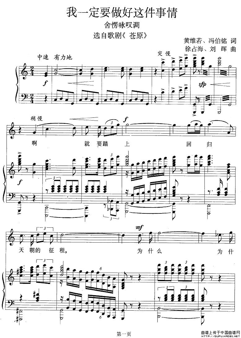 曲谱:我一定要做好这件事情(歌剧《苍原》选曲 [正谱])