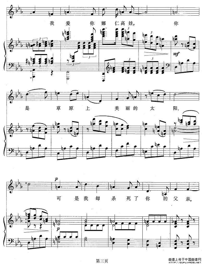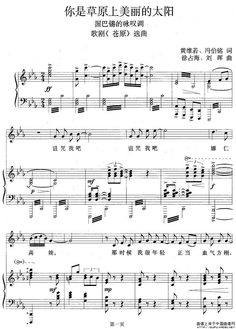 曲谱:你是草原上美丽的太阳(歌剧《苍原》选曲 [正谱])