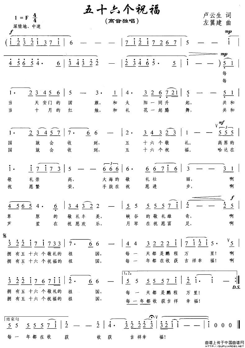 曲谱:五十六个祝福(卢顺生词 左翼建曲)