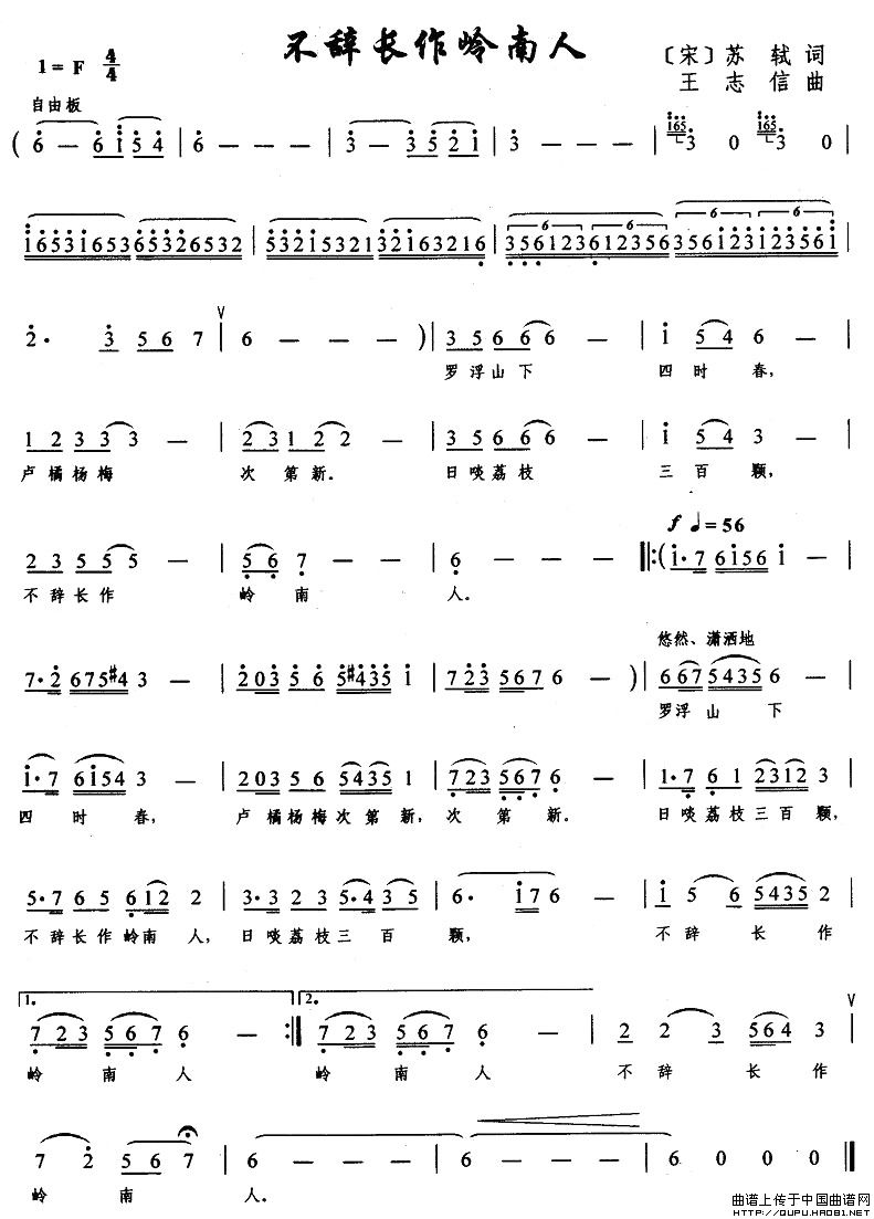 曲谱:不辞长作岭南人