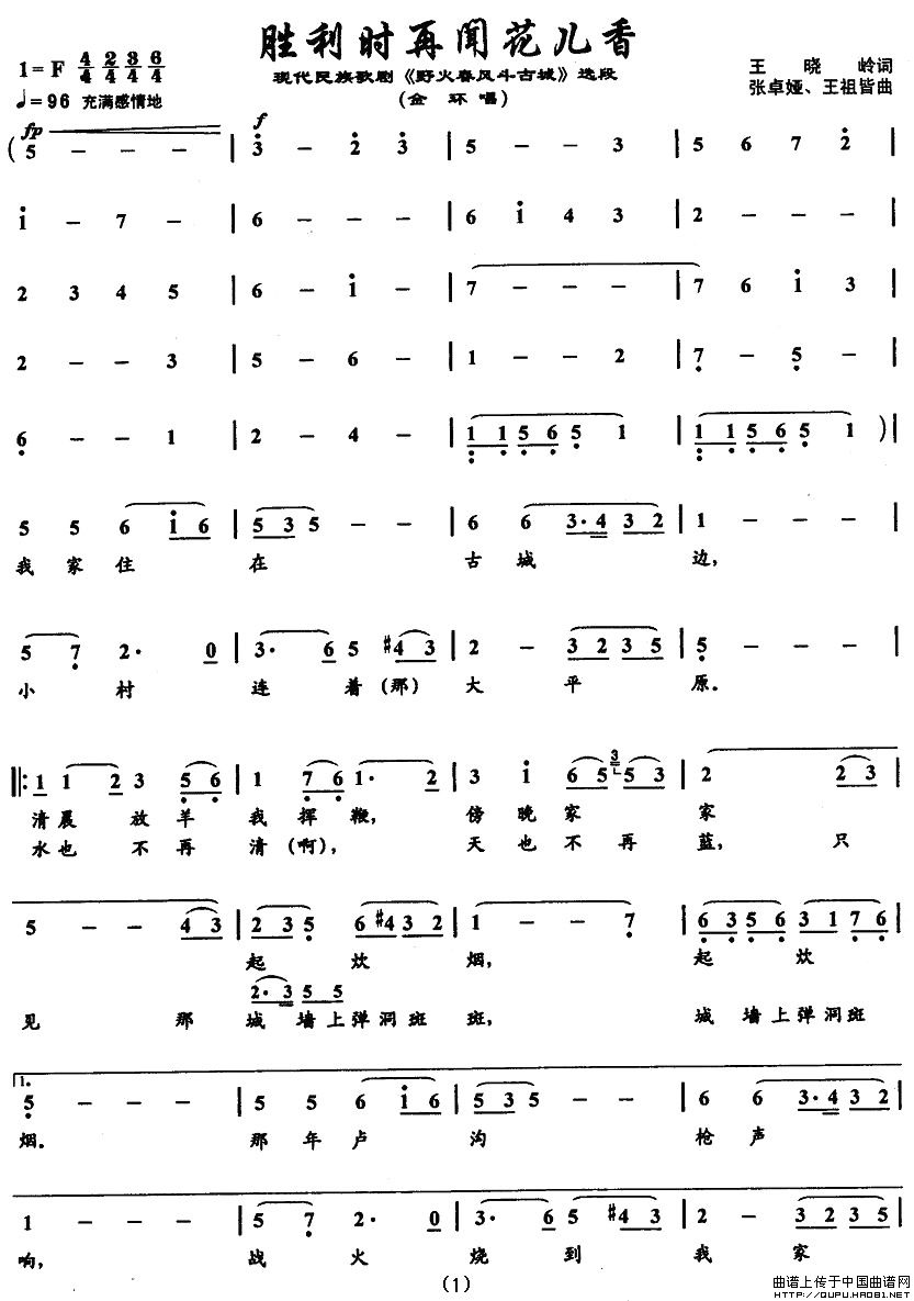 曲谱:胜利时再闻花儿香(歌剧《野火春风斗古城》选曲)