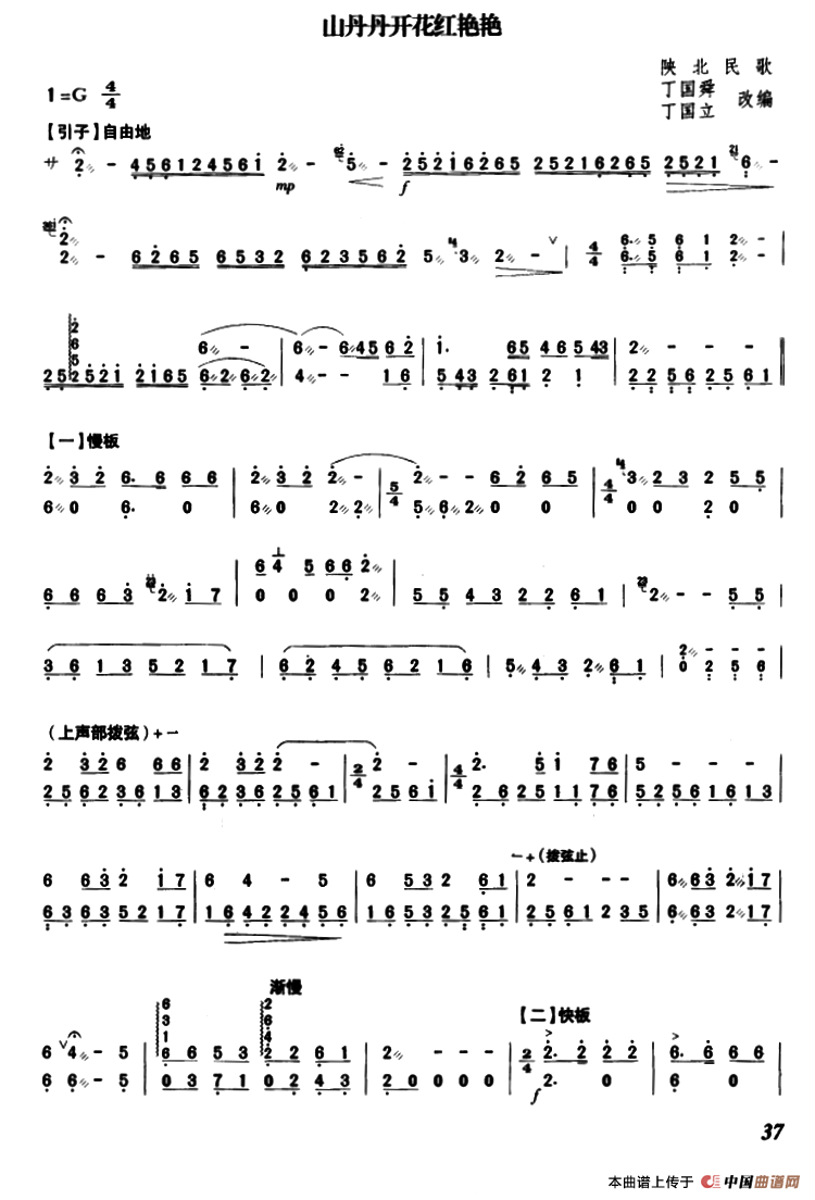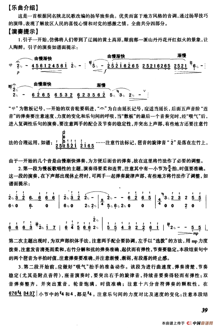 版本一:选自《扬琴考级曲集 考级辅导用书》三级